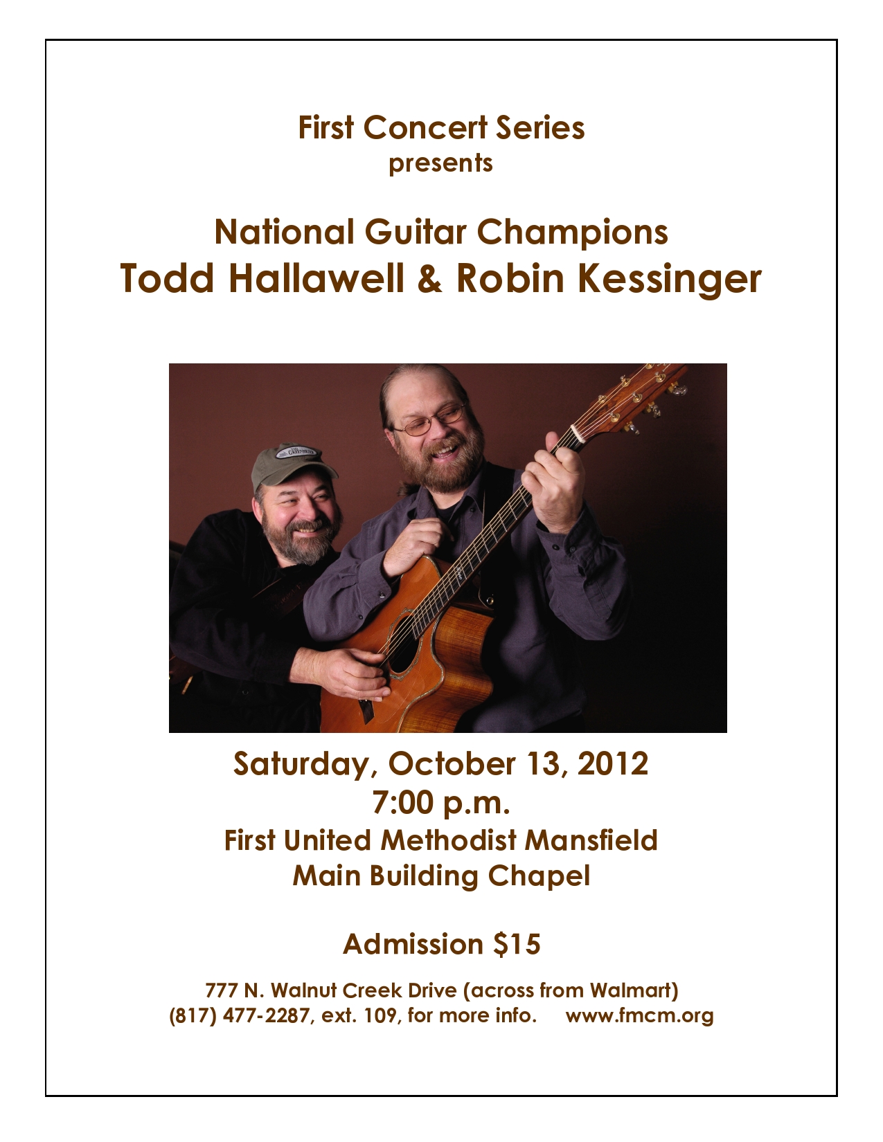 We have the privilege of hosting two, count them, TWO national guitar champions on Saturday, Oct. 13th at 7pm. These guys are amazing musicians and are hilarious together on stage. You’ll hear GREAT music, laugh and be entertained, so don’t miss it. Please send the flyer to all who might enjoy the concert. peace, Scott