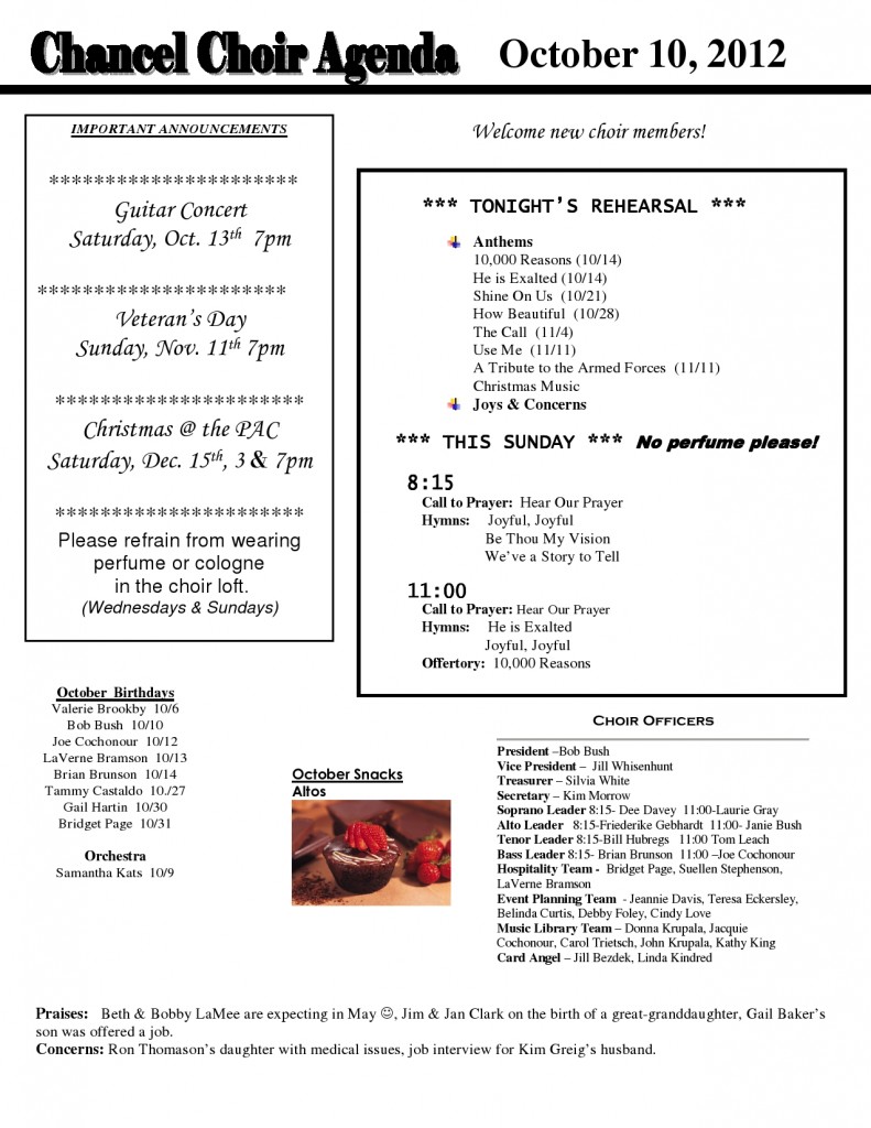 Choir Agenda October 10