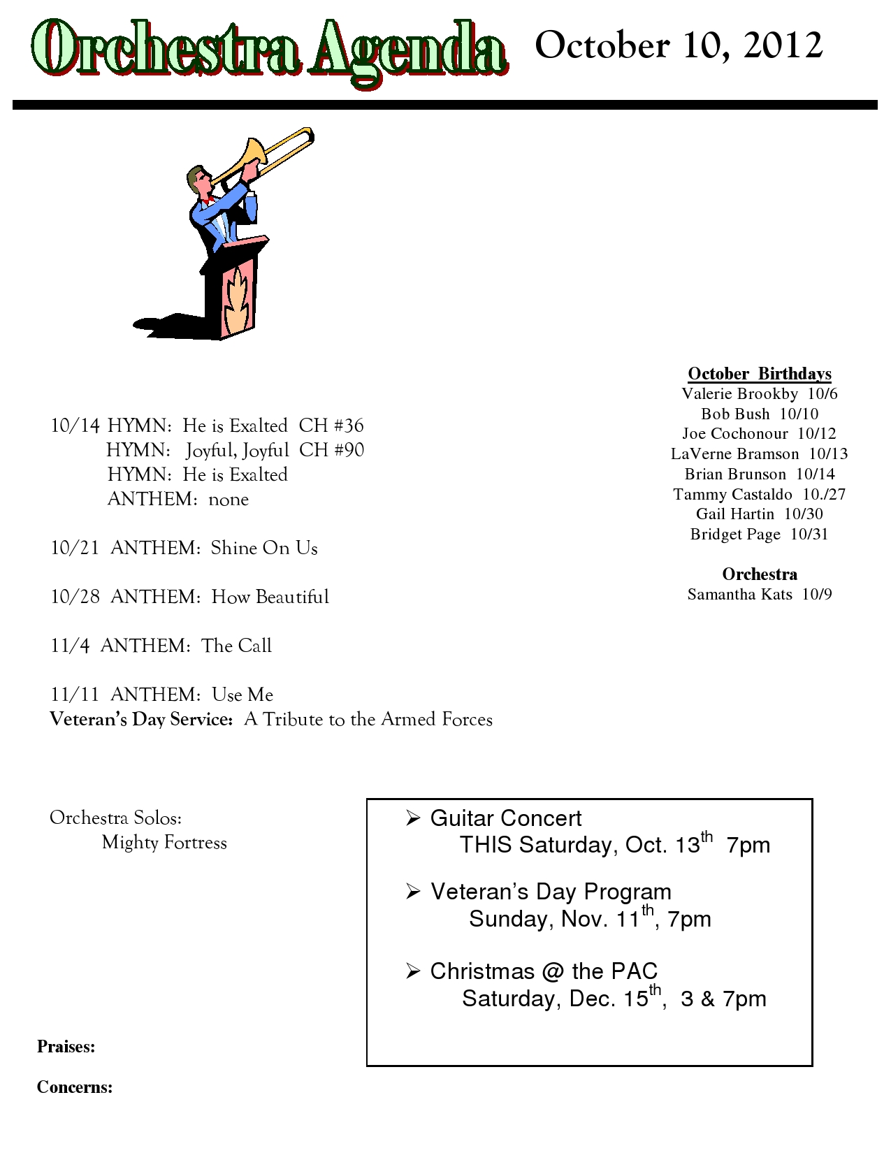 Orchestra Agenda October 10