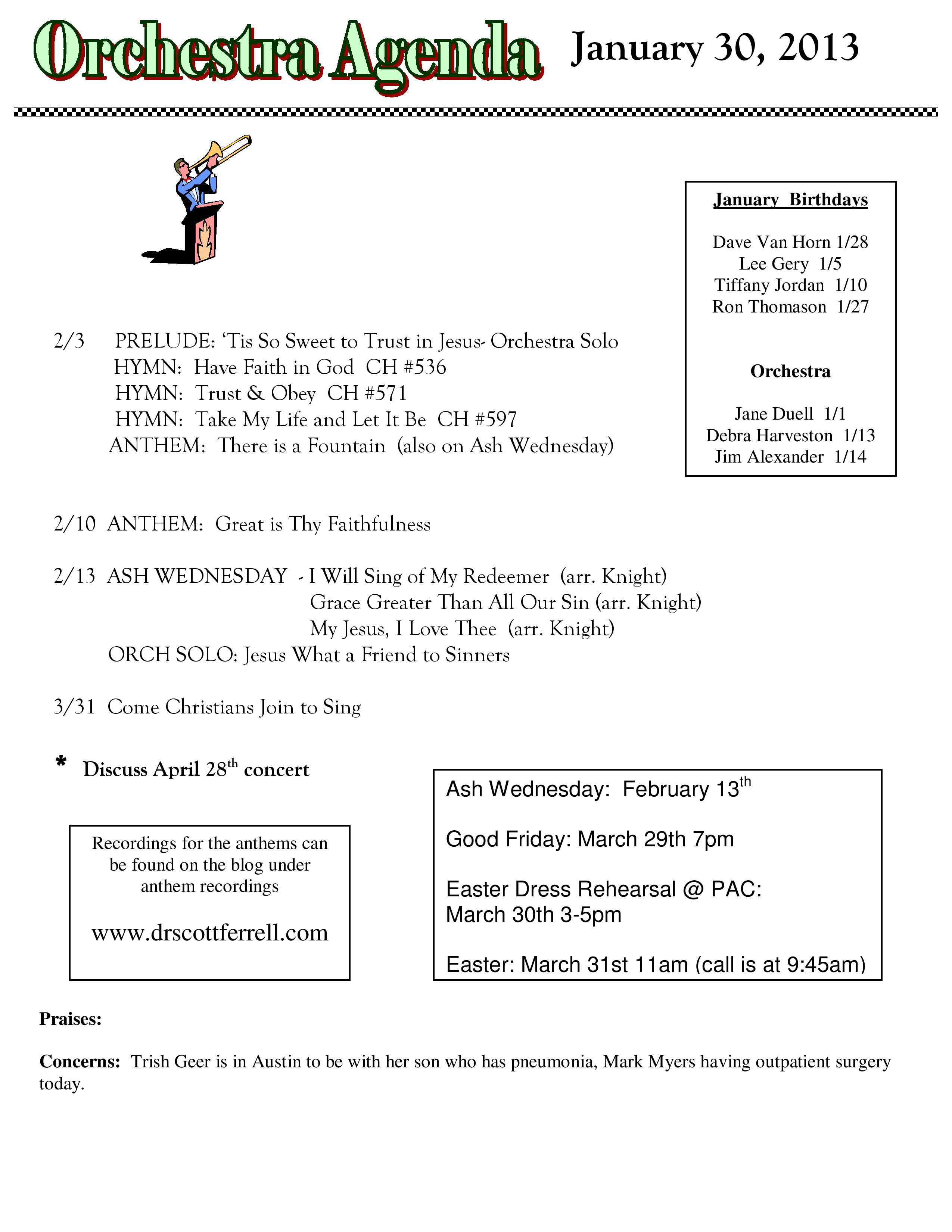 Orchestra Agenda January 30