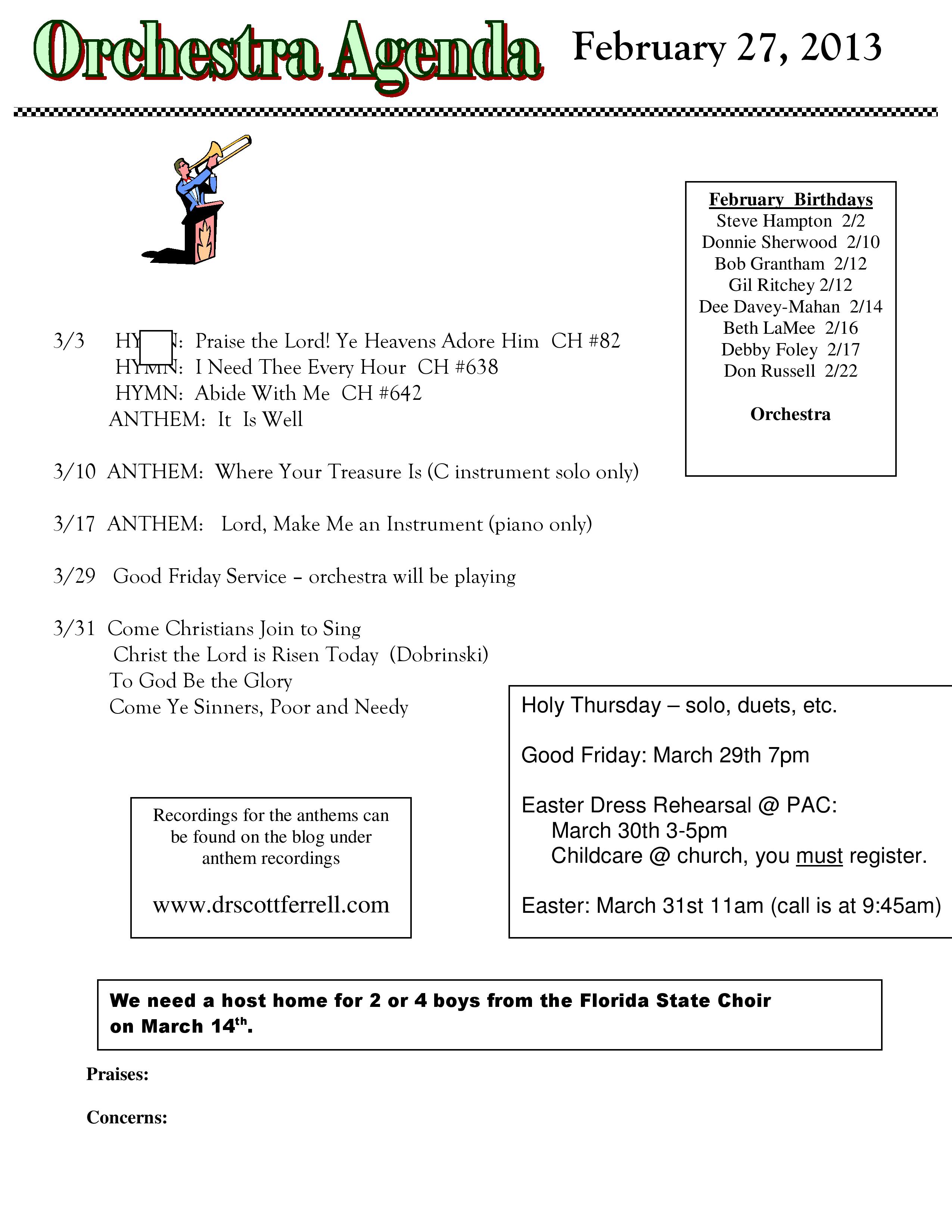 Orchestra Agenda February 27