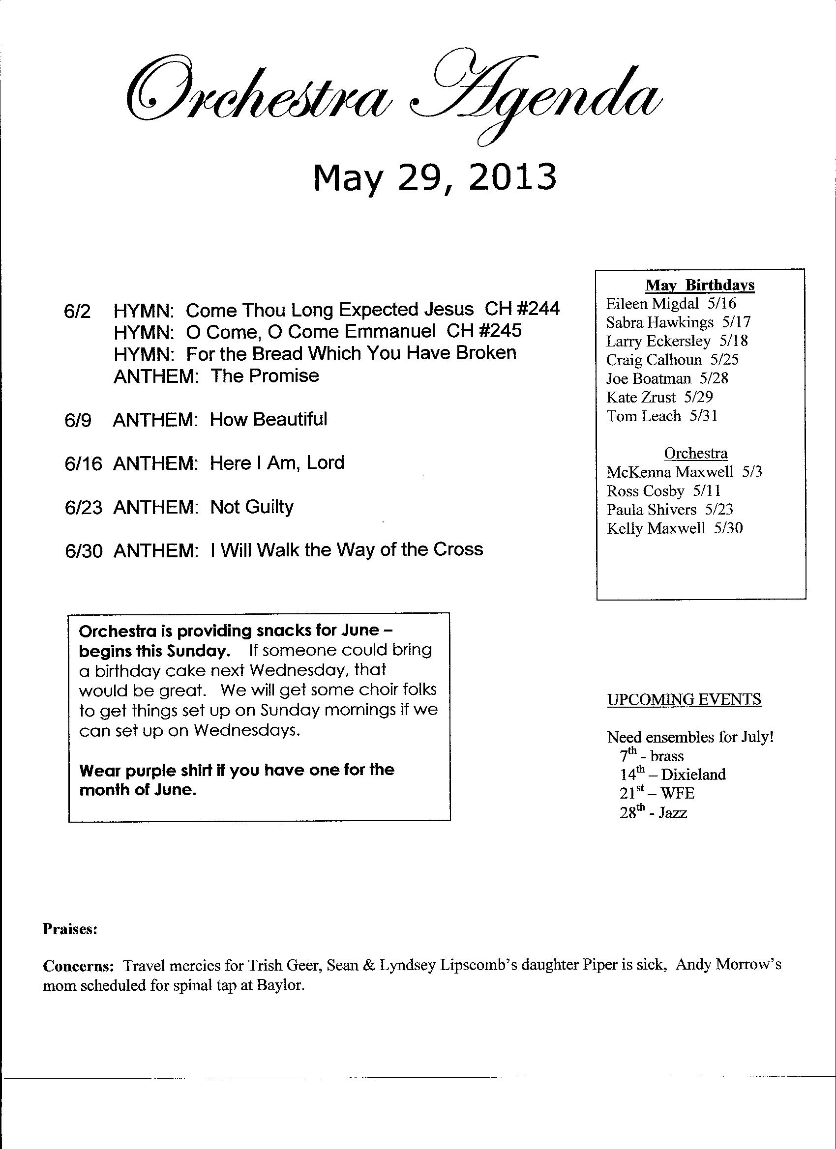 Orchestra Agenda