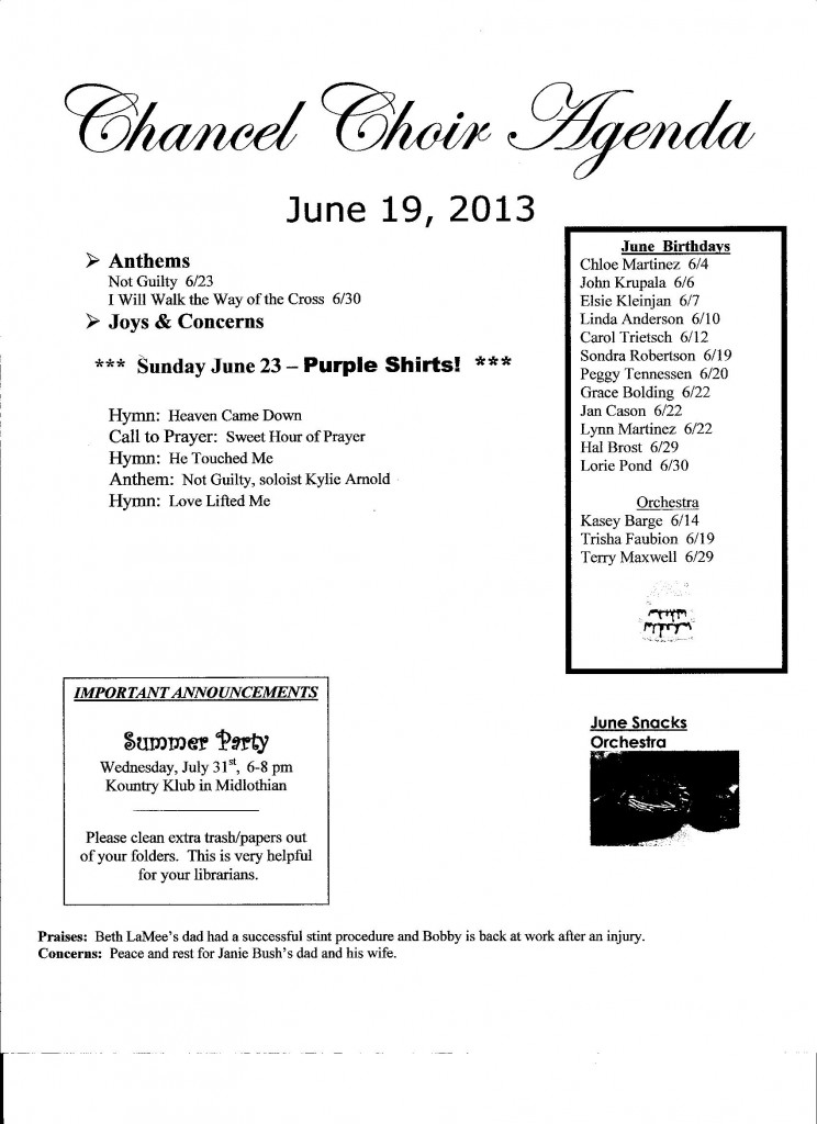 Chancel Choir Agenda