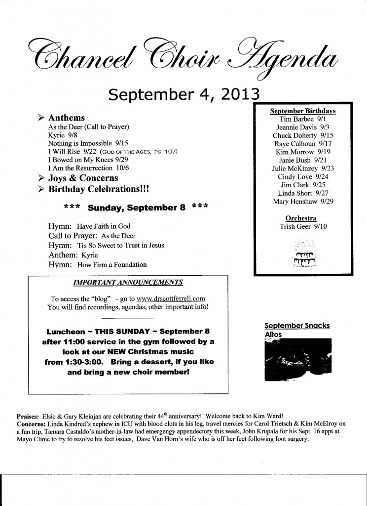 Chancel Choir Agenda