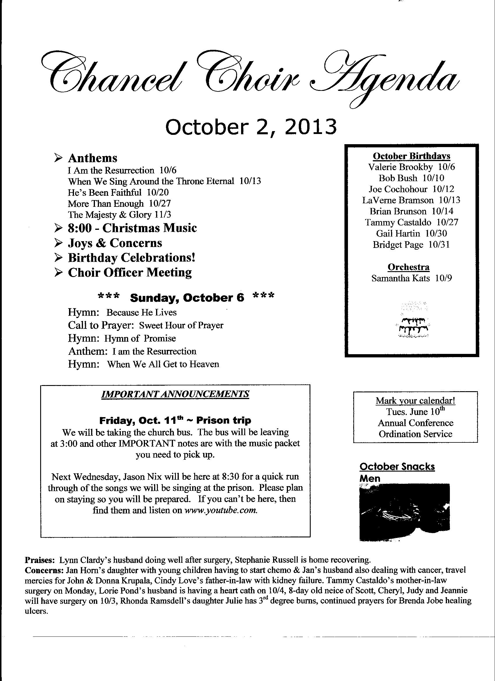 Chancel Choir Agenda