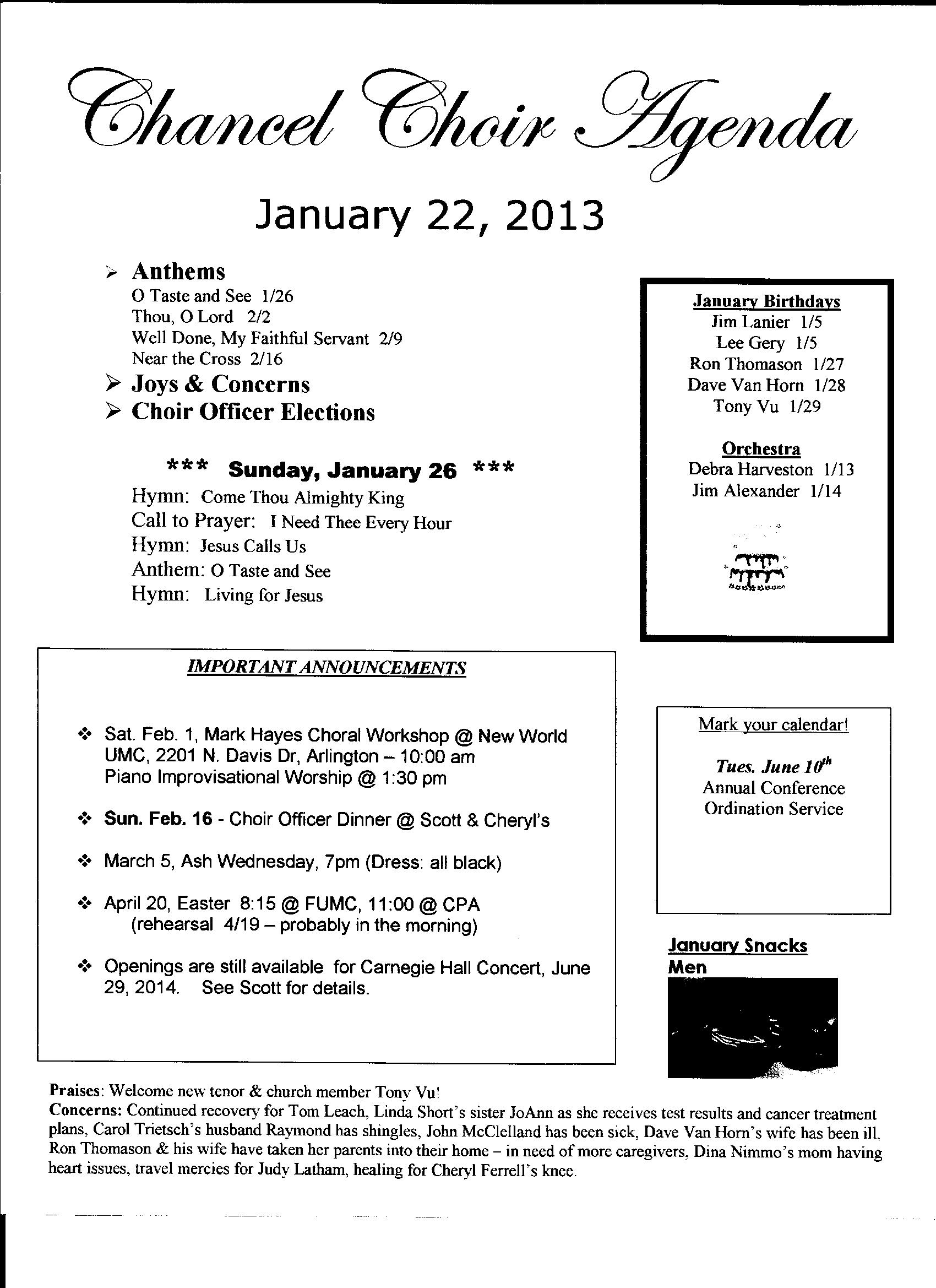 Chancel Choir Agenda
