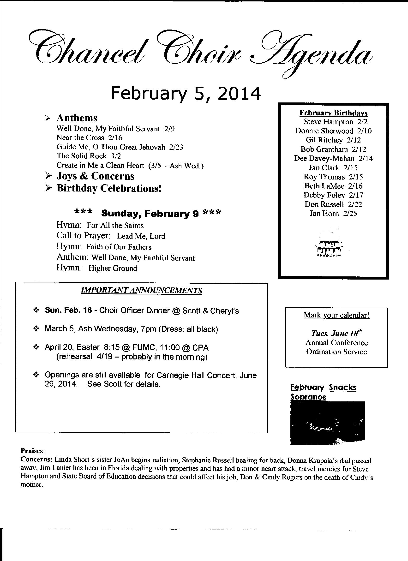 Chancel Choir Agenda