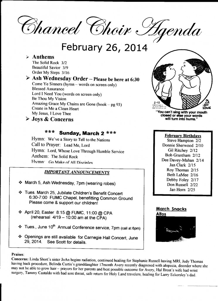 Chancel Choir Agenda