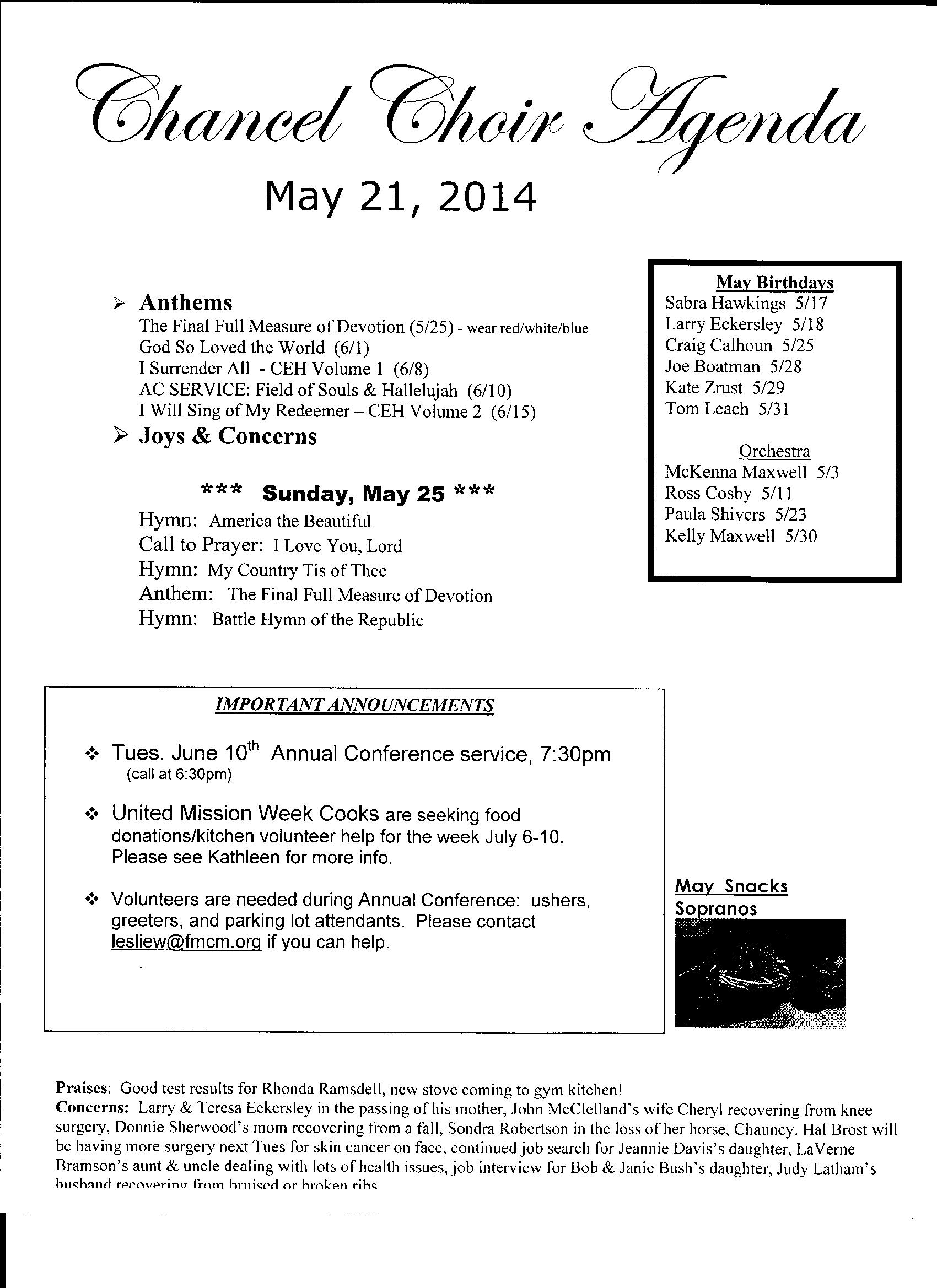 Chancel Choir Agenda