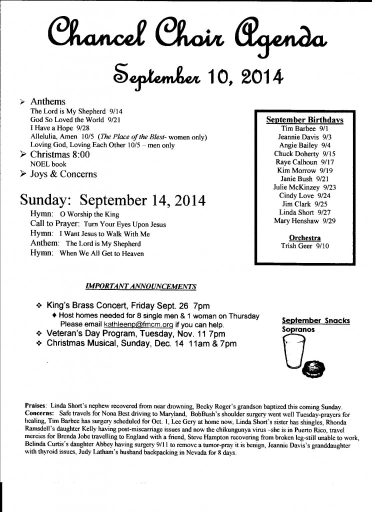 Chancel Choir Agenda