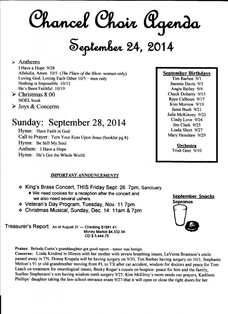 Chancel Choir Agenda