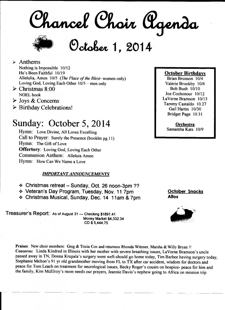 Chancel Choir Agenda
