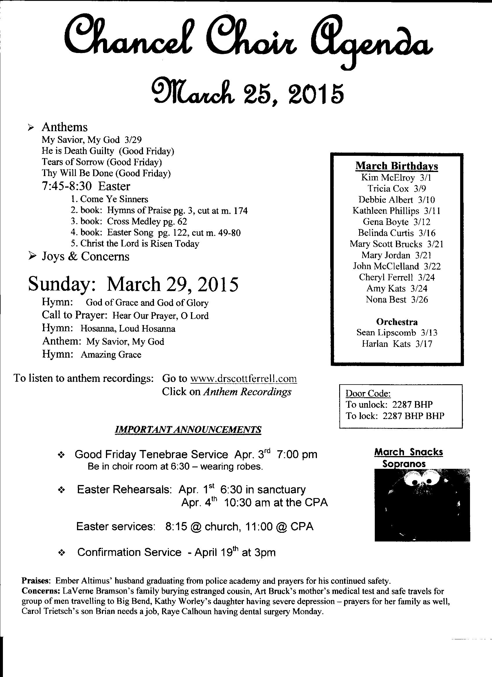 Chancel Choir Agenda