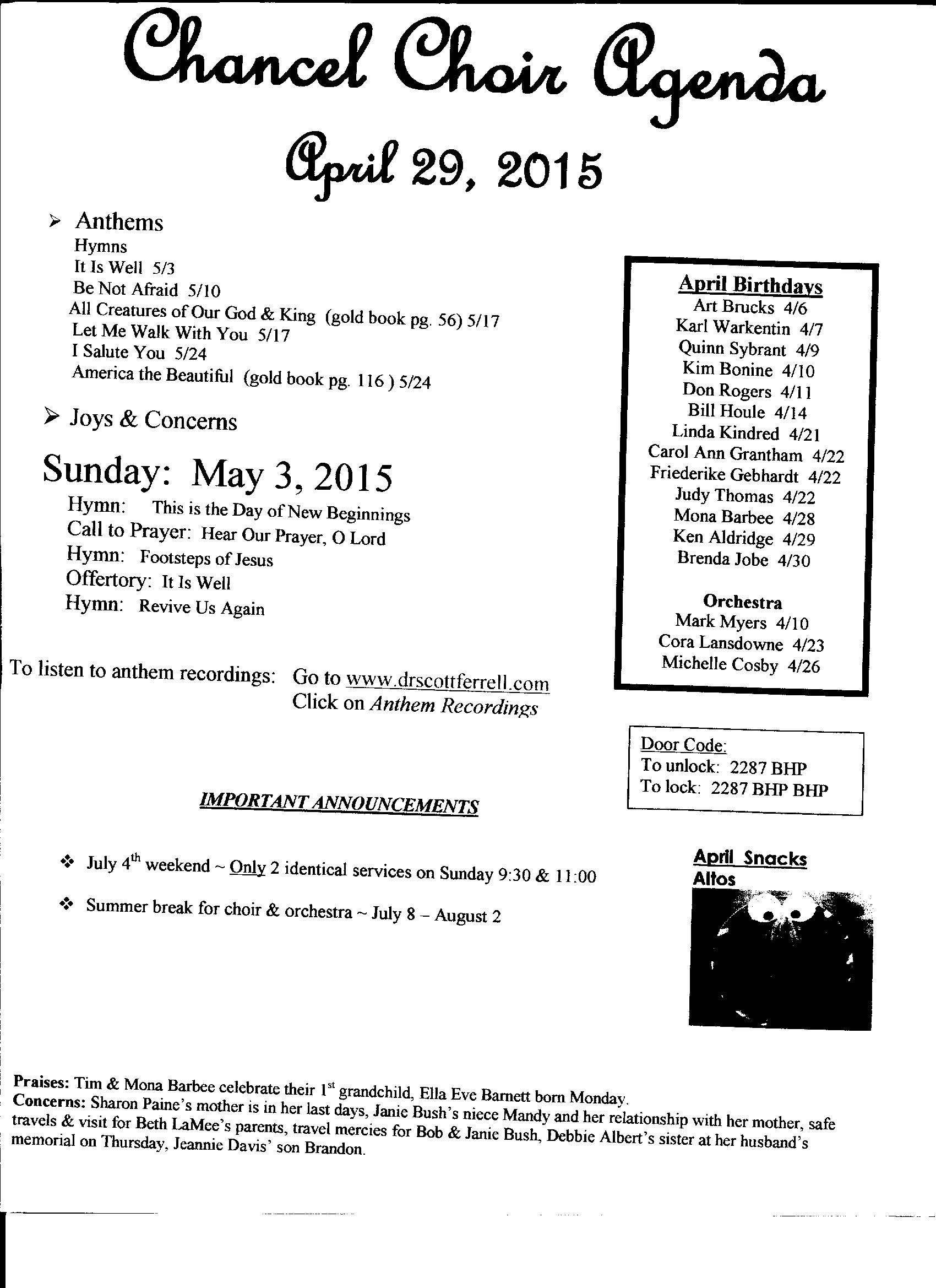 Chancel Choir Agenda