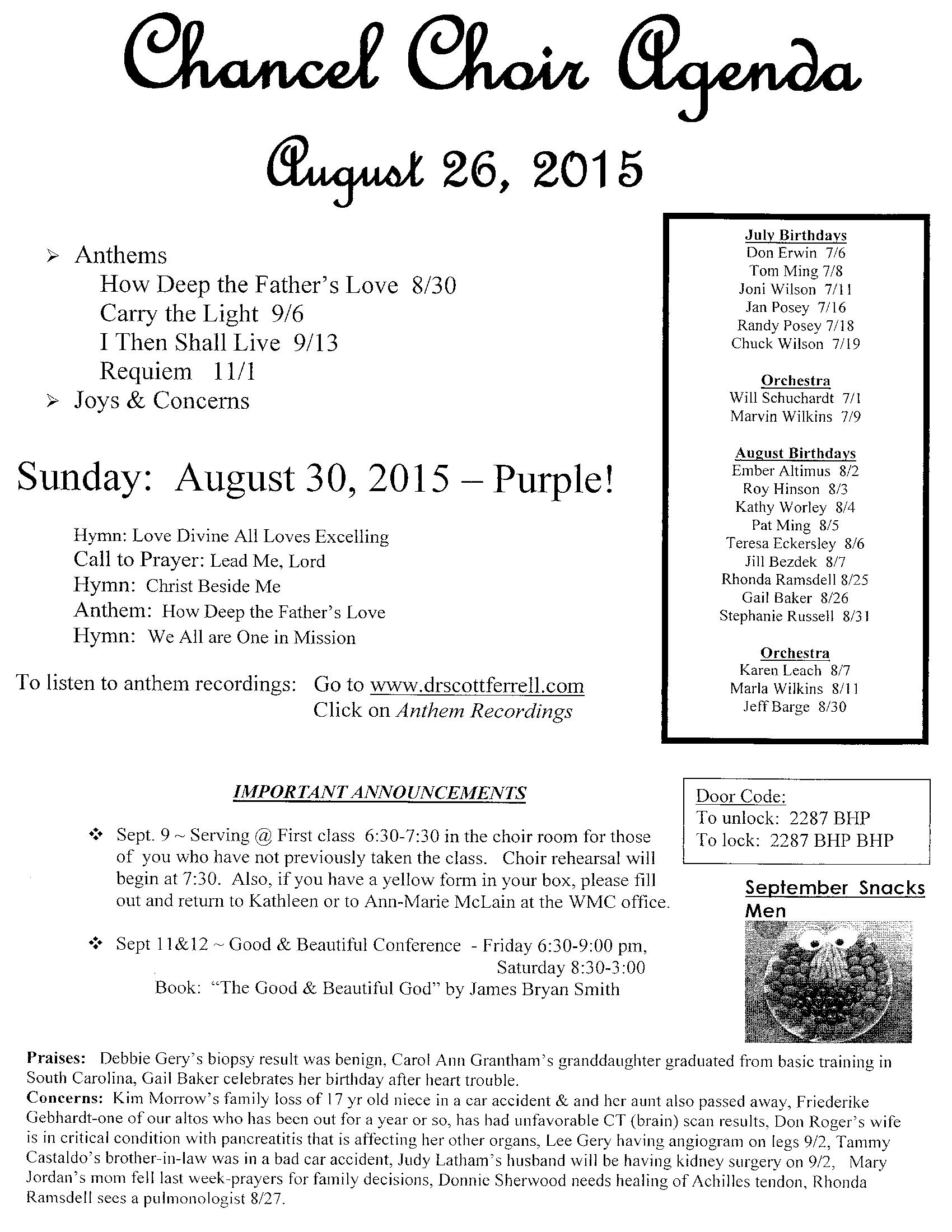 choir agenda