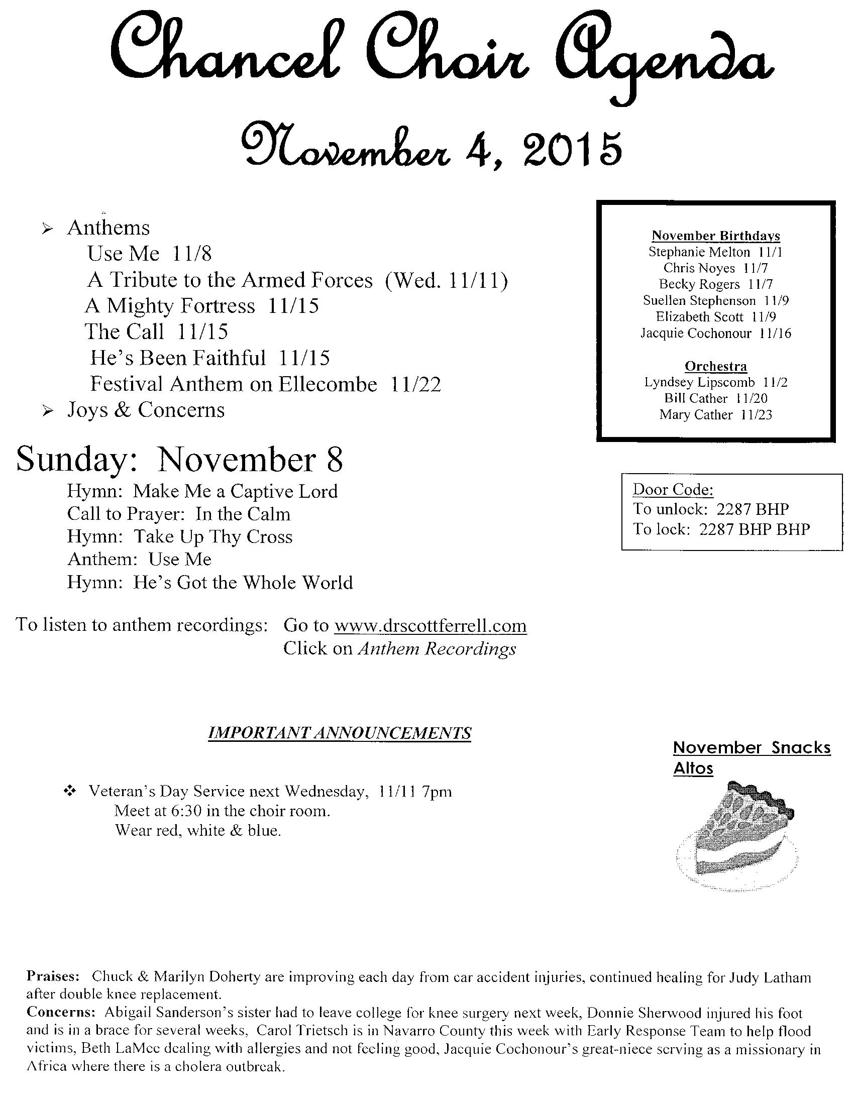 choir agenda
