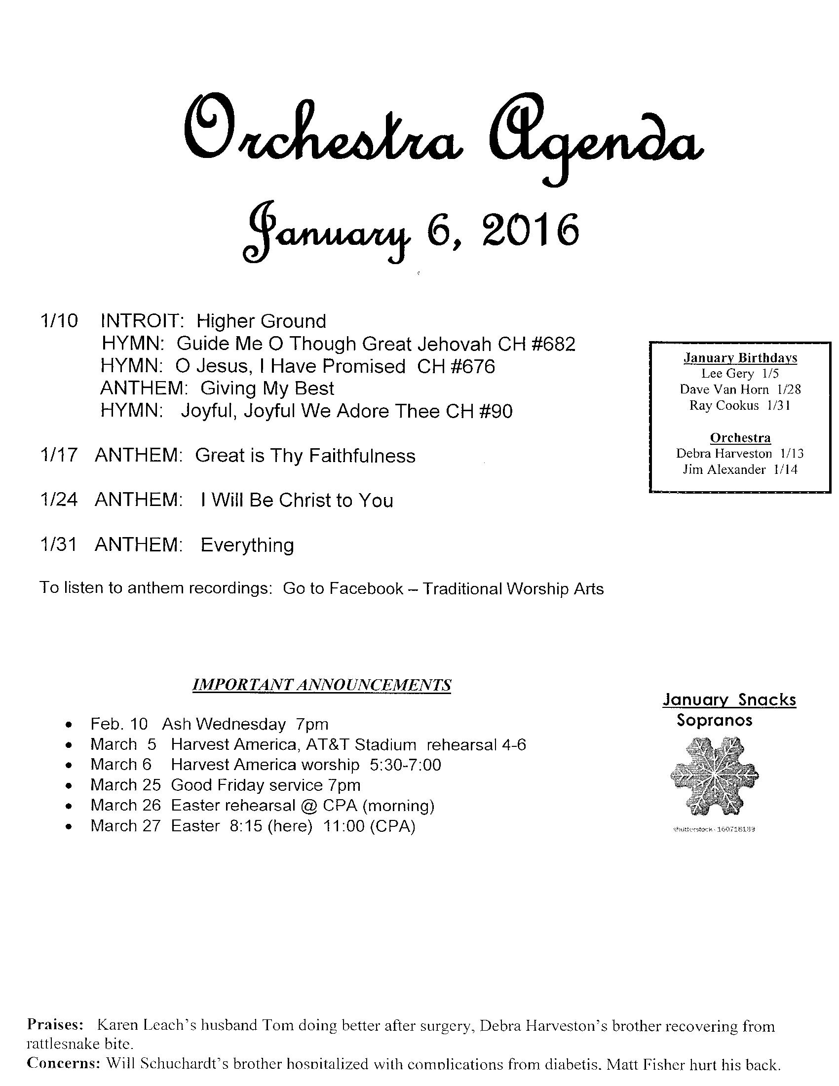 orchestra agenda