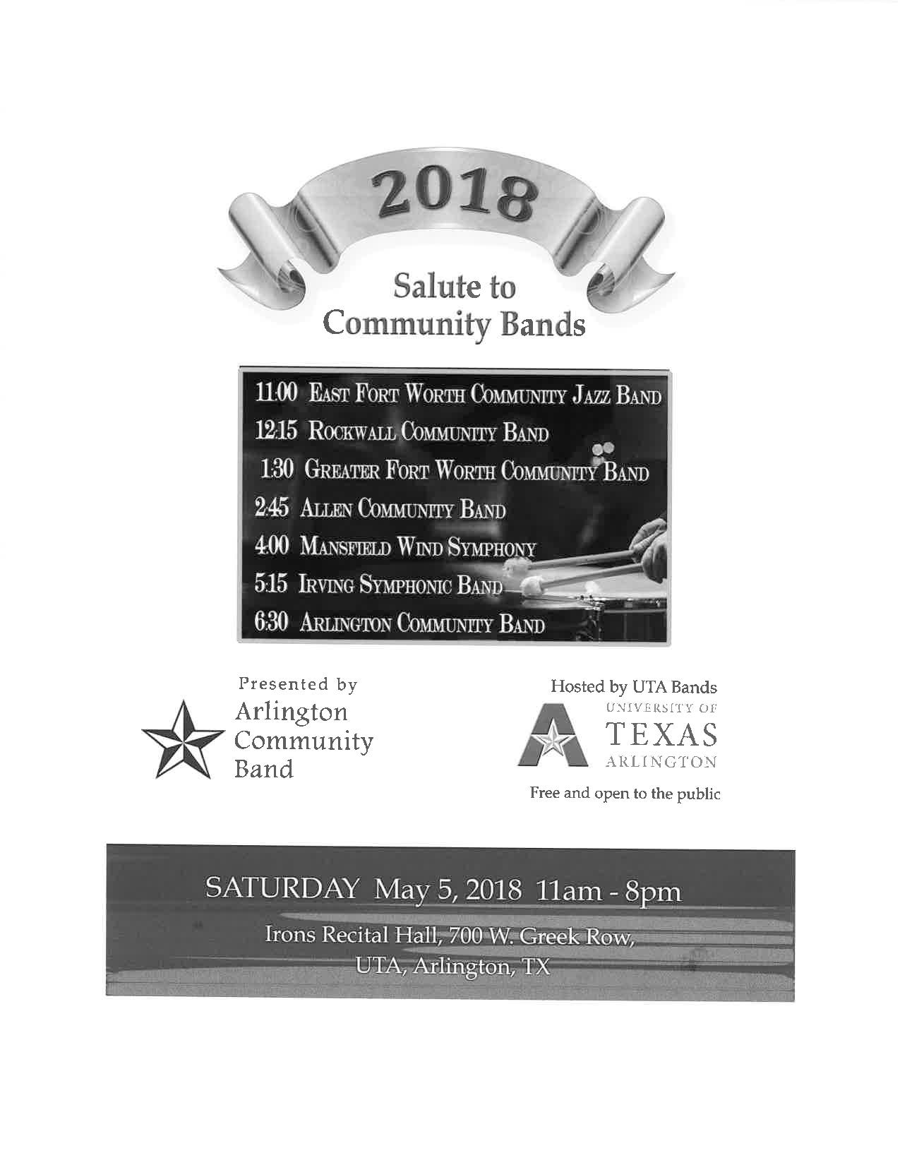 Salute to Community bands- this Saturday! We have members that play in the Mansfield Wind Symphony and the Arlington Community Band! Come out and support our friends and hear some great music!
