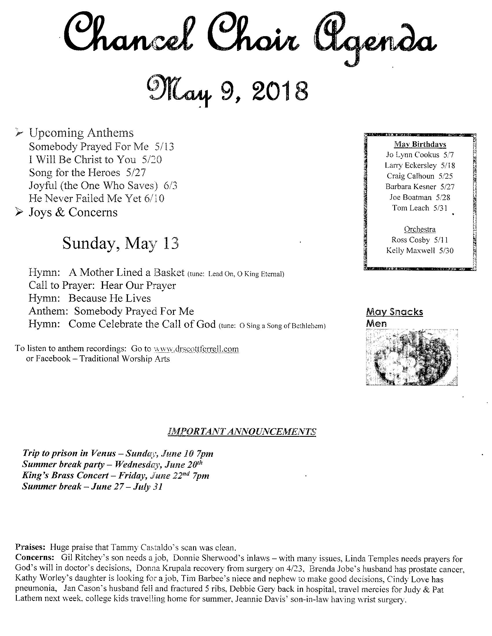 Chancel Choir Agenda
