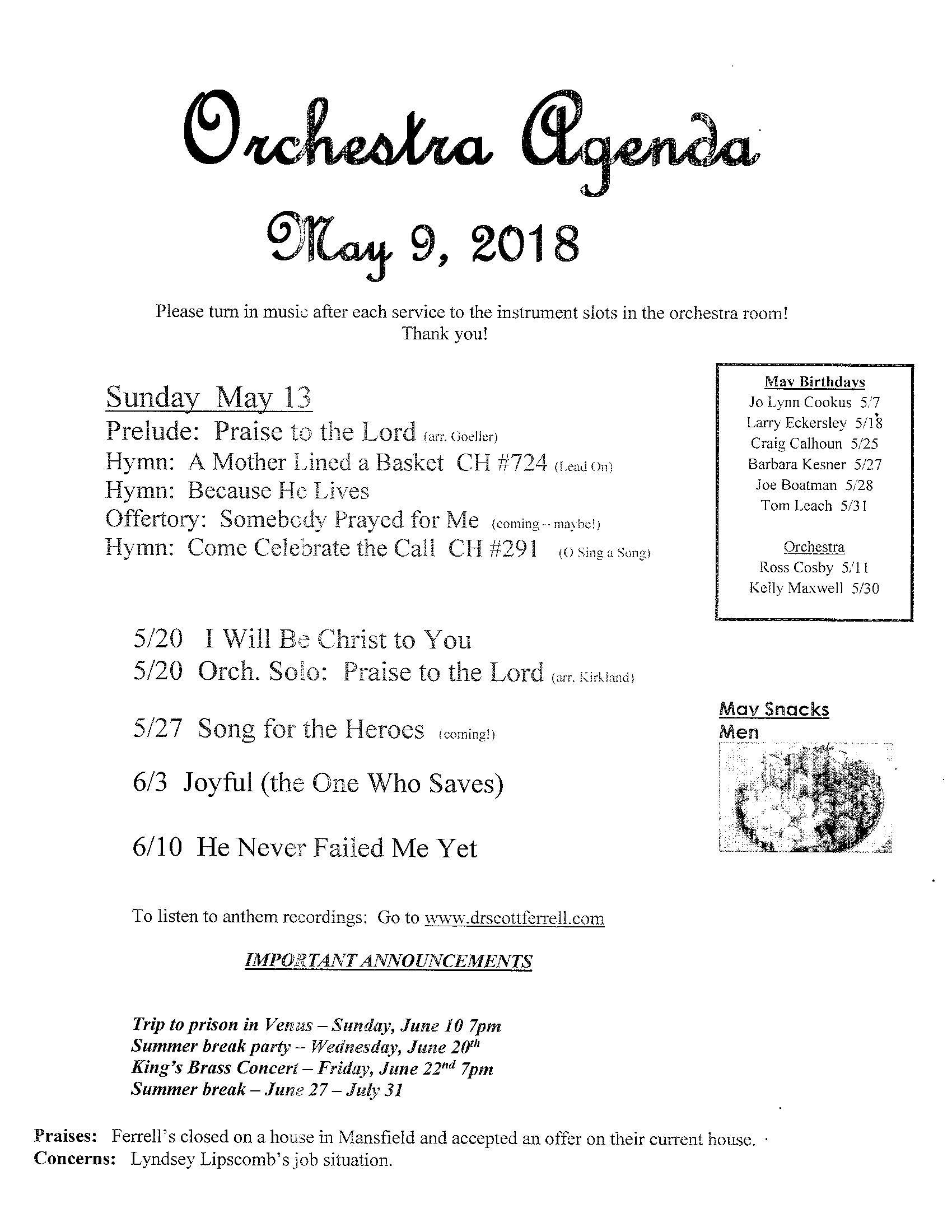 orchestra agenda
