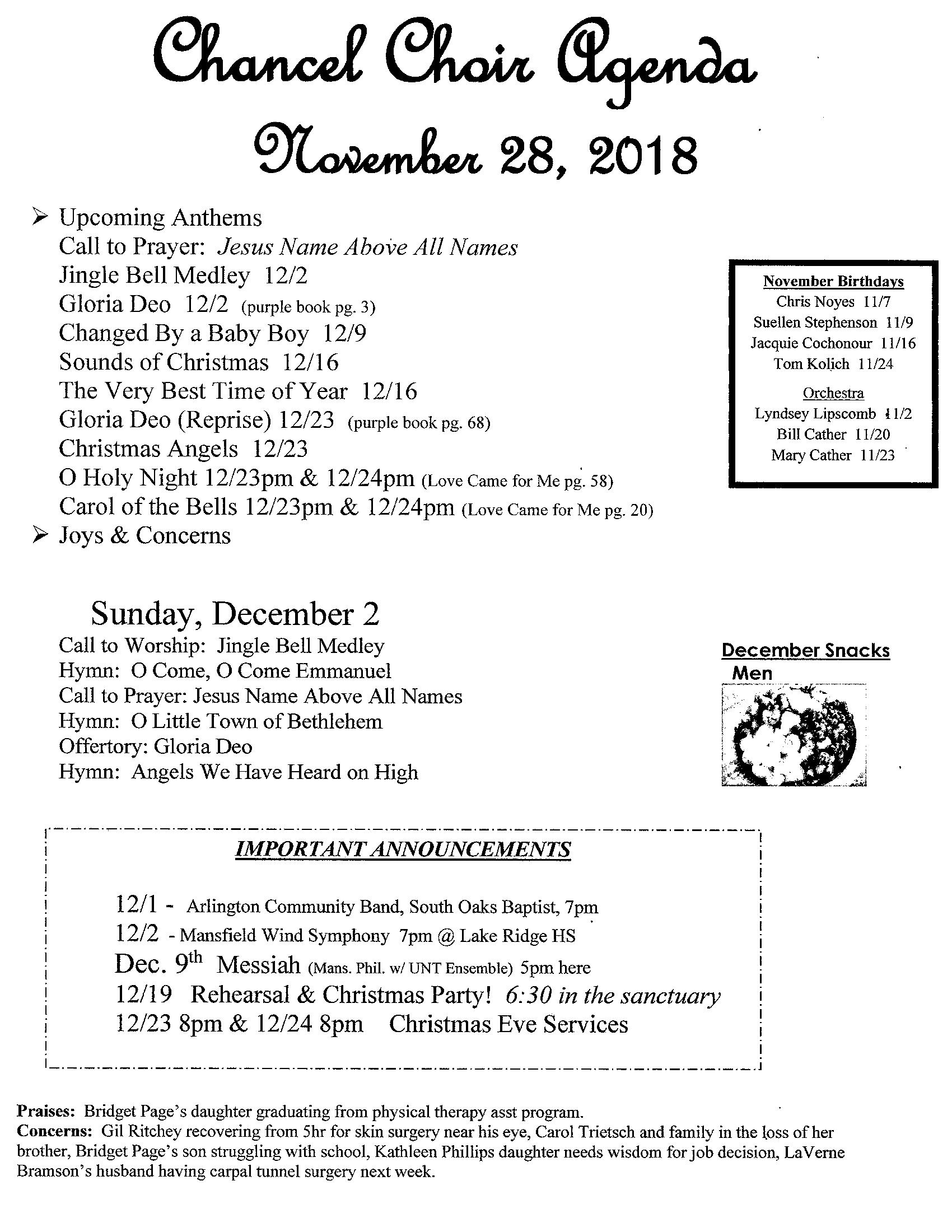 Chancel Choir Agenda