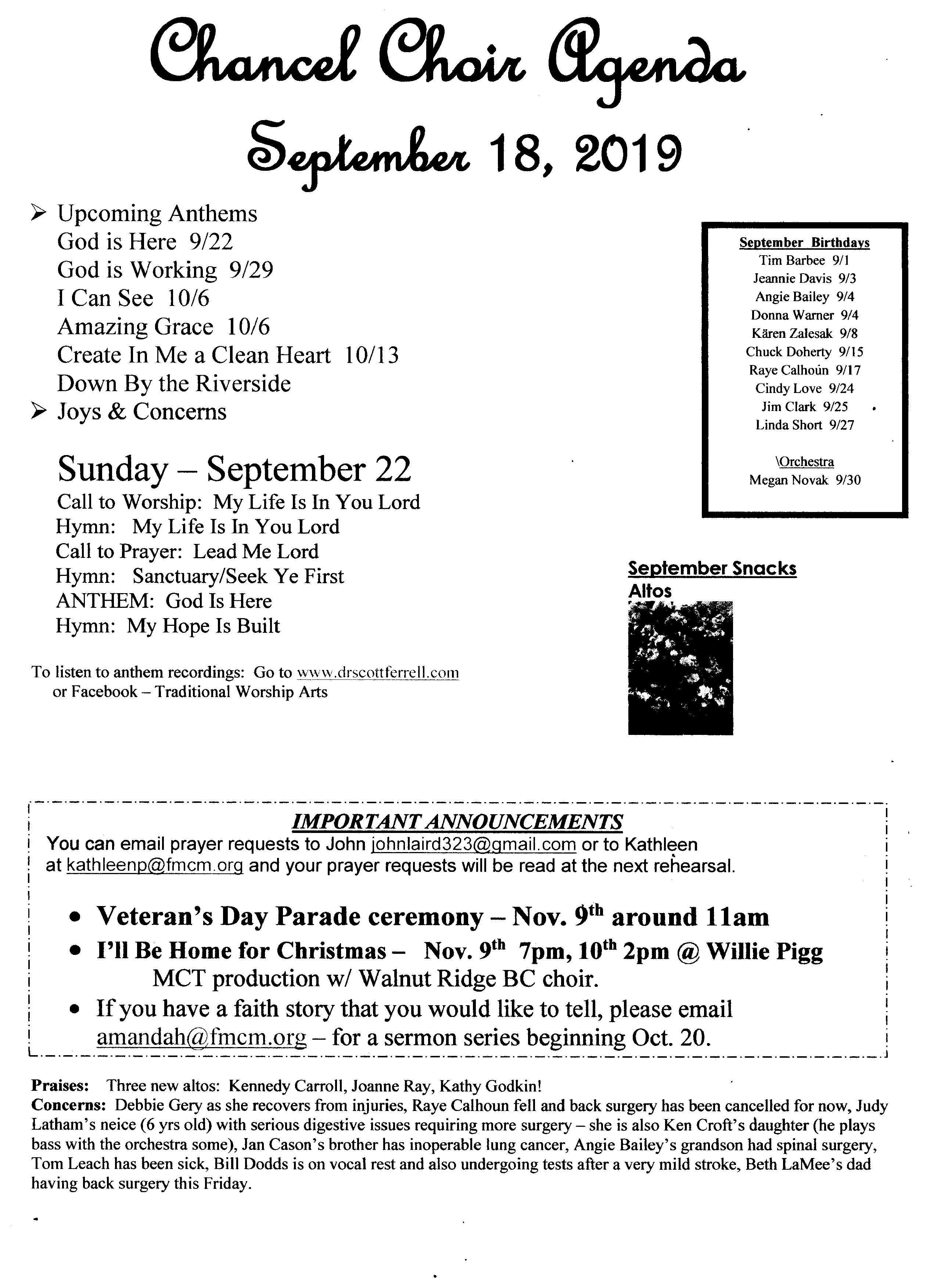 Chancel Choir Agenda