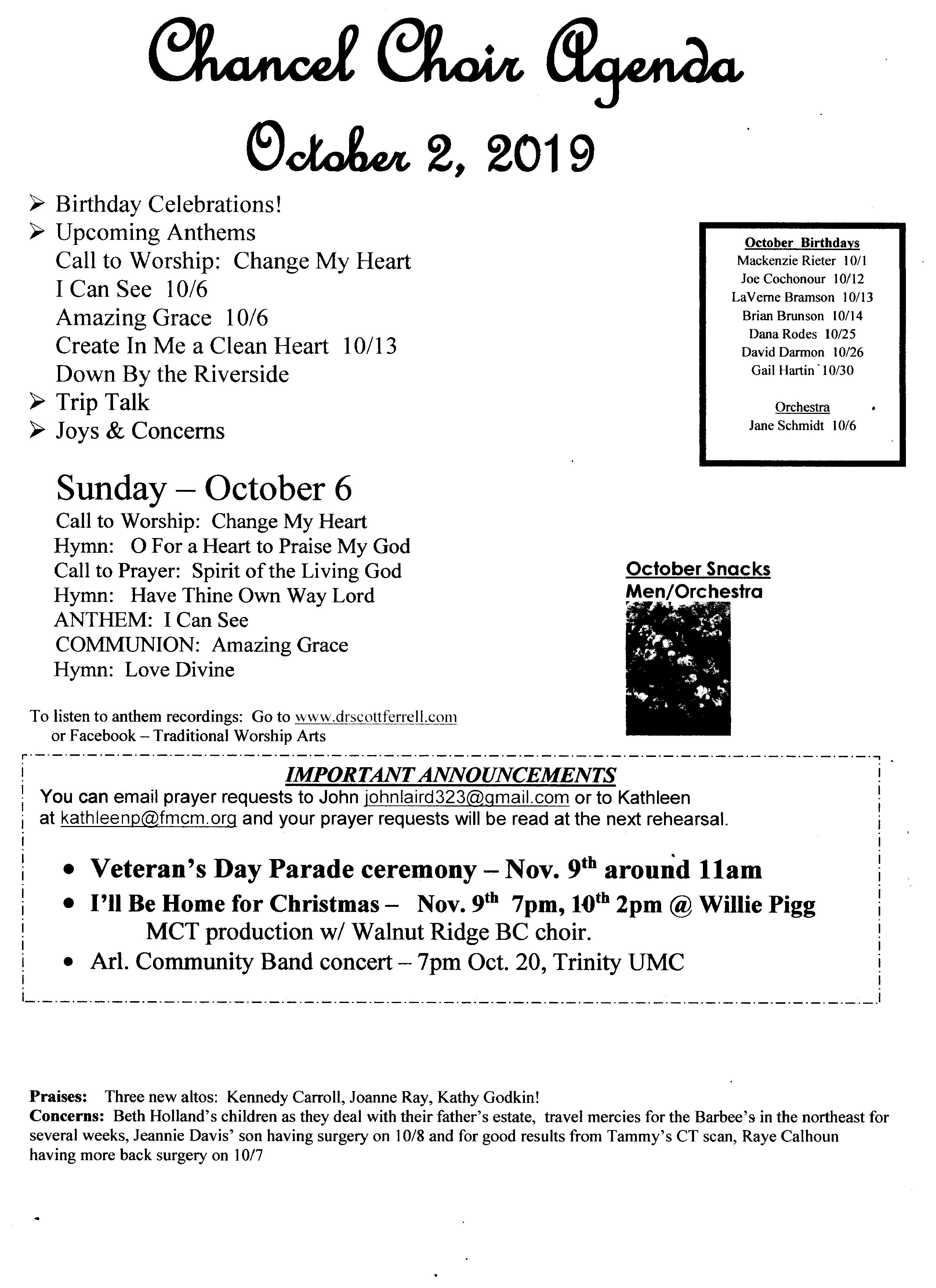 Chancel Choir Agenda