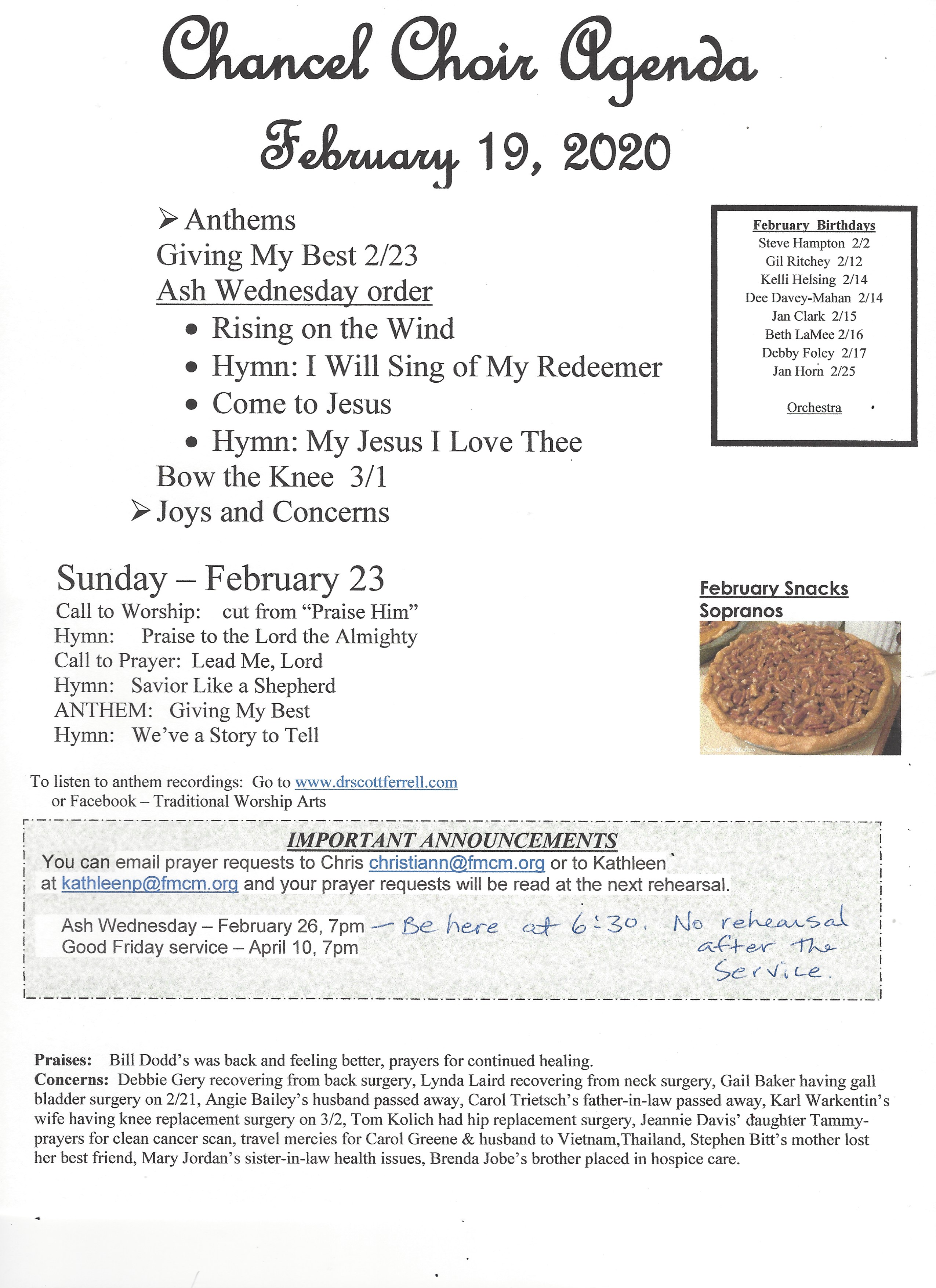Chancel Choir Agenda